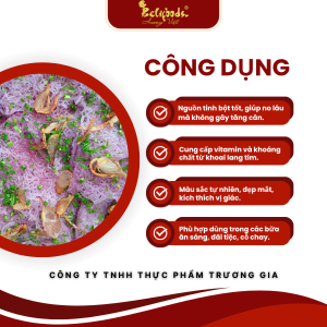 Tạo cảm giác no lâu, kiểm soát cân nặng: Nhờ lượng chất xơ và tinh bột phức, bún khoai lang tím giúp no lâu mà không gây tăng đột ngột đường huyết. Thích hợp cho người ăn kiêng, ăn chay.