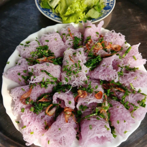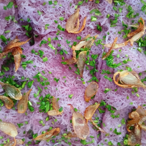 Bánh hỏi khoai lang tím Belifoods ăn kèm thịt quay, thịt nướng, chả ram, bò lá lốt; dùng với cháo lòng…